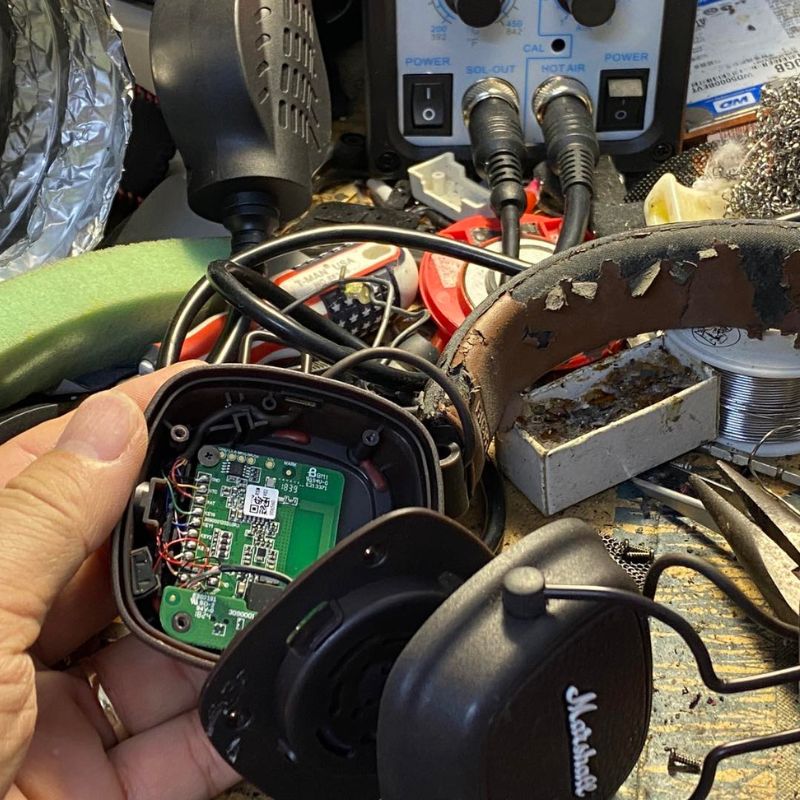 Để thay headband, kỹ thuật viên phải cắt headband cũ, tháo rã toàn bộ mạch điện tử, đi lại dây tín hiệu và hàn lại đúng vị trí trước khi lắp lớp da mới vào. Đây là lý do không phải chỗ nào cũng làm được phần này — cần hiểu biết điện tử cơ bản, không chỉ là thợ may hay thợ da thông thường.