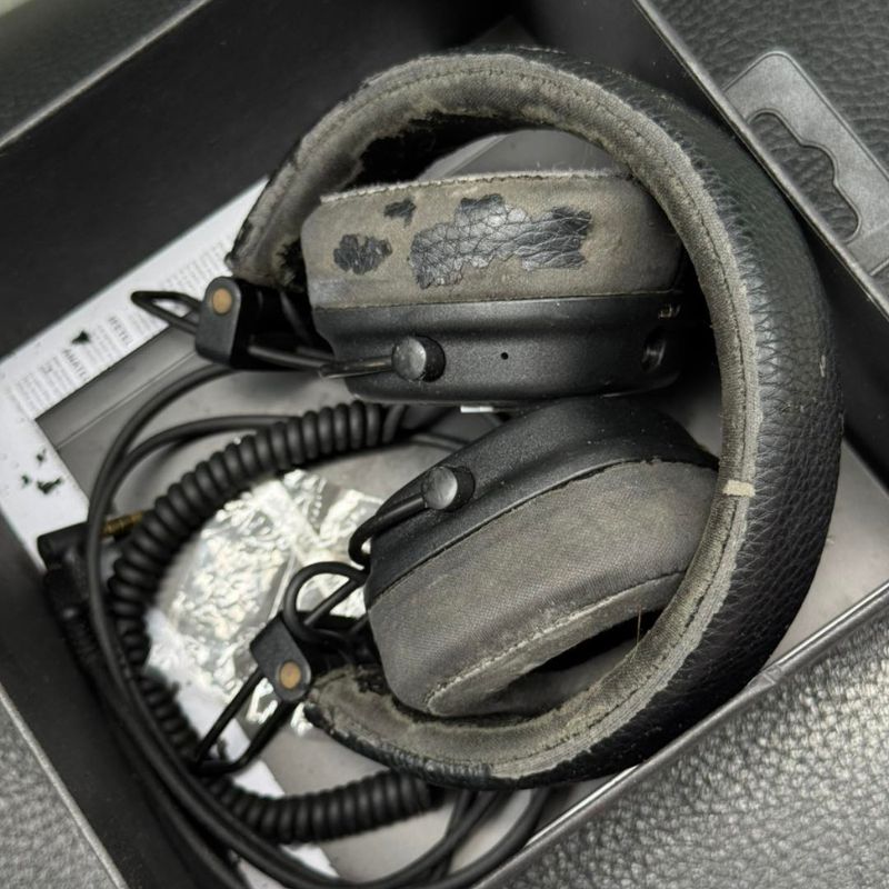 Marshall Major dùng chất liệu giả da (PU leather) từ nhà máy — đây là vật liệu phổ biến trên hầu hết tai nghe tầm trung và cao cấp. Sau 2–3 năm sử dụng thường xuyên, nhiệt độ cơ thể, mồ hôi và ánh sáng làm lớp PU bắt đầu bong tróc từng mảng. Không phải lỗi sản phẩm — đây là đặc tính tự nhiên của vật liệu này.