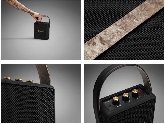 Trong khi Stockwell 2 Black and Brass thay đổi về thiết kế với màu sắc và logo mới. Bạn dễ dàng liên tưởng đến dòng Marshall Multiroom với Logo vàng đồng cao cấp trên nền đen huyền bí. Những chi tiết như núm vặn cũng sẽ sử dụng màu vàng đồng, quai xách đen kết hợp lớp lót trong màu vàng nhạt rất đẹp mắt.