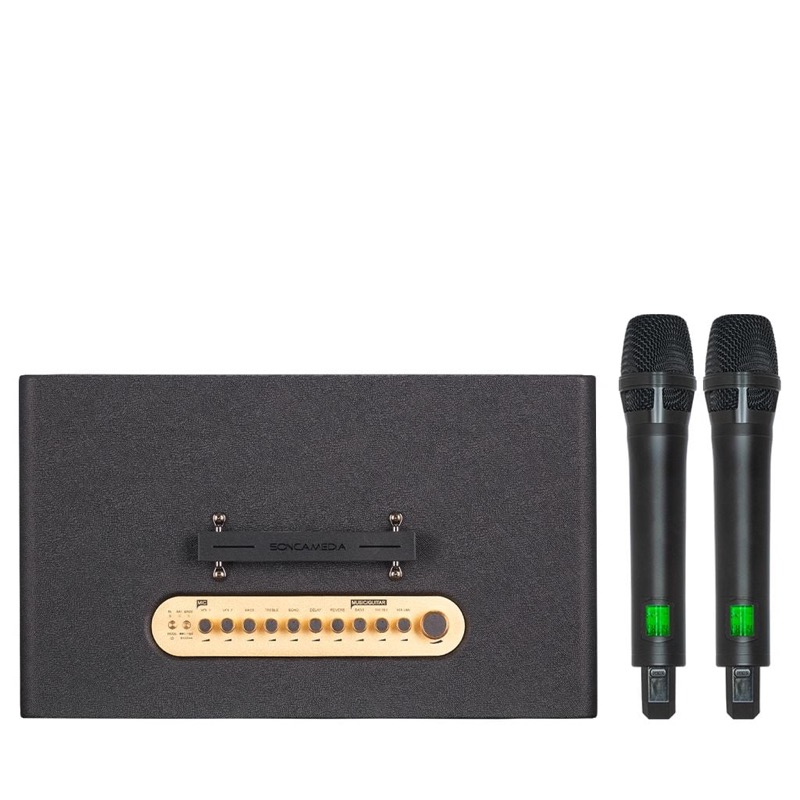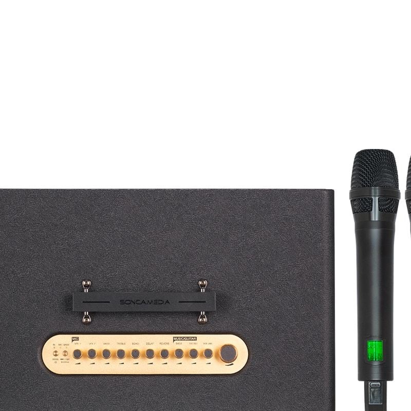Double The Double 2×2 là công nghệ độc quyền của Soncamedia sử dụng 2 chip DSP — 1 chip xử lý giọng hát (micro), 1 chip xử lý nhạc nền (line in / Bluetooth / HDMI). Hai luồng âm thanh đi qua 2 bộ equalizer và reverb riêng biệt trước khi trộn lại, khác hoàn toàn cách loa thường chỉ dùng 1 chip xử lý chung.