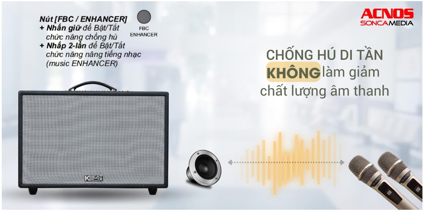 Loa karaoke di động ACNOS HiNet 3600 có chức năng Chống Hú Di Tần - Một tính năng phương pháp chống hú bằng cách dịch chuyển tần số. Ưu điểm của phương pháp này là Mic vẫn nhẹ hơi dễ hát như bình thường. Đây là tính năng đã được tích hợp và lập trình tự động có sẵn trong máy. Ngoài ra, hiệu ứng Reverb đa kênh độc quyền của ACNOS giúp tiếng hát mượt mà.