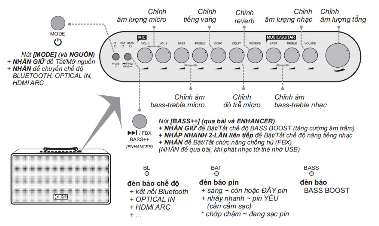 Loa Karaoke xách tay mini ACNOS FLAC 36 với nhiều tính năng độc đáo, khác biệt với các dòng loa xách tay trên thị trường hiện nay: