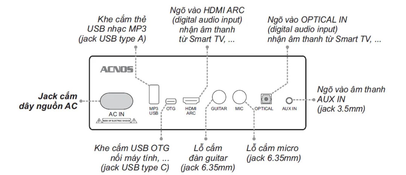 Ngoài trang bị cổng kết nối OPTICAL như các sản phẩm cao cấp , ACNOS CS448 được trang bị thêm cổng HDMI ARC nhận âm thanh trực tiếp từ smart tivi, dễ dàng kết nối, hát karaoke trực tiếp với màn hình tivi có sẵn tại nhà.