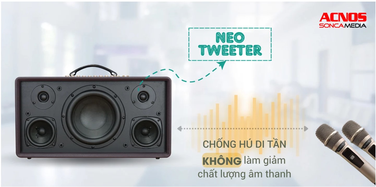 Điểm khác biệt mà ACNOS FLAC 36 được đánh giá là một sản phẩm hoàn hảo chính là cấu trúc 3 đường tiếng với hệ thống 5 loa bao gồm loa SUB 20CM (8") + 2-loa TRUNG 10CM (4") + 2-loa Neo TWEETER (TREBLE). Cũng giống những dòng sản phẩm cao cấp đòi hỏi chú trọng vào chất âm riêng, ACNOS FLAC 36 sử dụng 2 loa Tweeter Neodymium (dùng trong các dòng loa nghe nhạc Hi-end cao câp) giúp âm treble nghe hay hơn.
