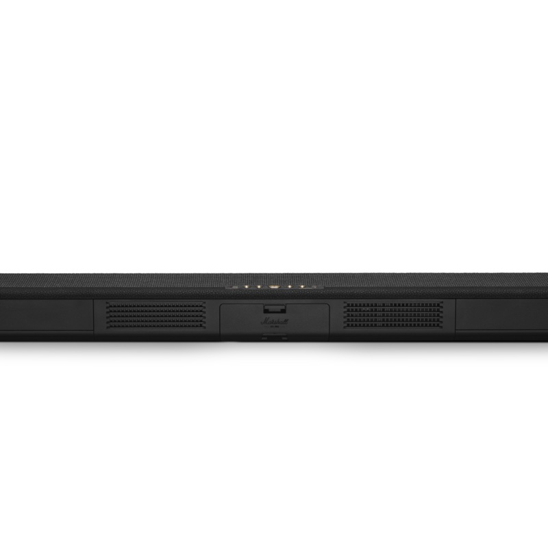 Soundbar có thể đặt dưới TV theo chiều nằm ngang hoặc gắn tường theo chiều dọc. Marshall thiết kế waveguide đặc biệt và góc nghiêng của driver để trải âm đồng đều ở cả hai tư thế — không cần lo âm thanh bị lệch khi gắn tường.