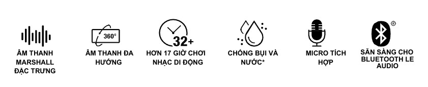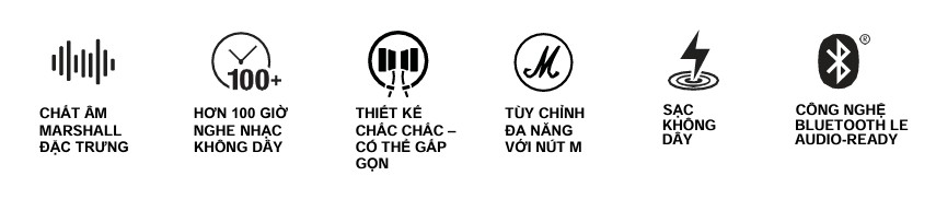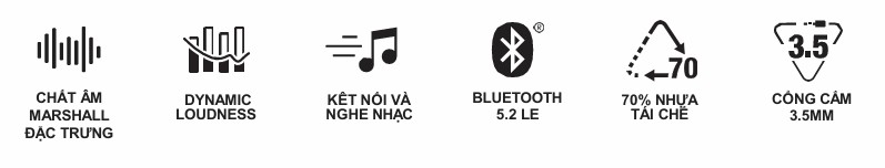 - Chất Âm Marshall Đặc Trưng: Các trình điều khiển dynamic được tùy chỉnh đặc biệt mang đến chất âm phong phú không gì sánh bằng, với dải bass mạnh mẽ, dải mid mượt mà và dải treble rõ nét. Hiện tượng méo tiếng cũng được giảm thiểu để bạn có thể thưởng thức âm nhạc một cách trong trẻo nhất.