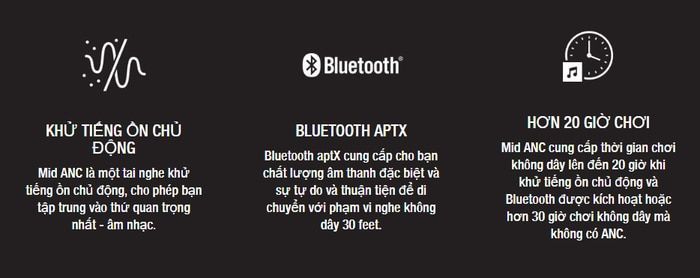 MID A.N.C là một tai nghe khử tiếng ồn chủ động với công nghệ Bluetooth aptX của Marshall. Nó cung cấp âm thanh không dây vượt trội trong khi làm giảm âm thanh xung quanh bạn, cho phép bạn thưởng thức những gì quan trọng nhất – âm nhạc.