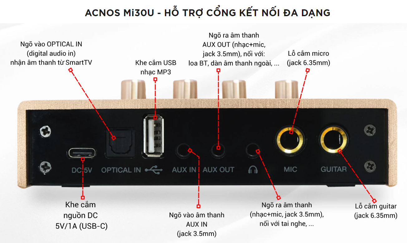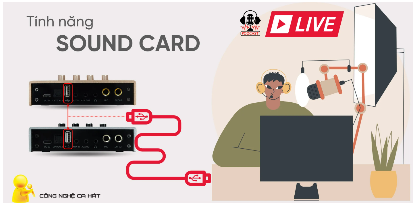 Ở phiên bản nâng cấp này, Acnos đã tích hợp bên trong vang số chỉnh cơ này tính năng Sound Card cho phép người dùng livestream và ghi âm chất lượng cao, kết nối với máy tính qua ngõ USB và đảm bảo chất lượng âm thanh luôn hoạt động tốt nhất.