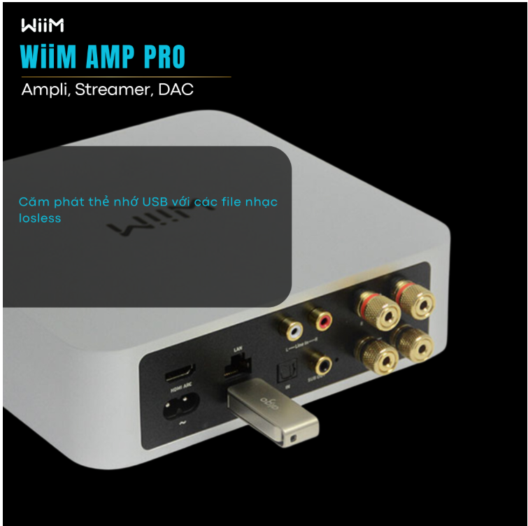 - USB-A: Cắm trực tiếp USB chứa file nhạc để phát (hỗ trợ nhiều định dạng lossless và lossy).