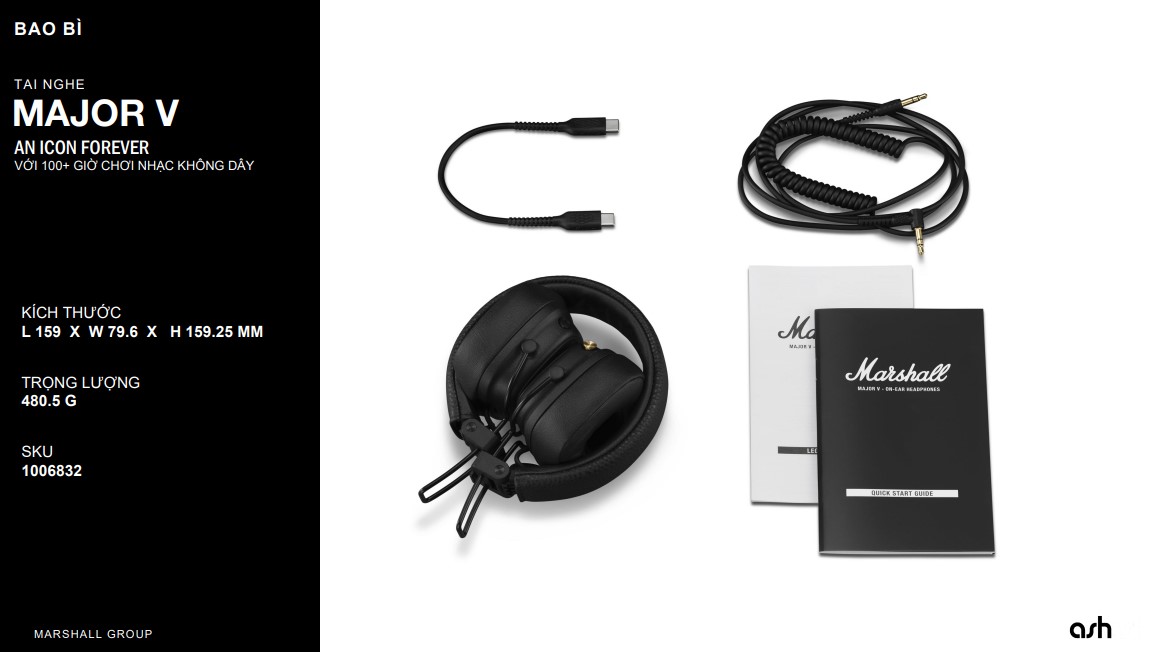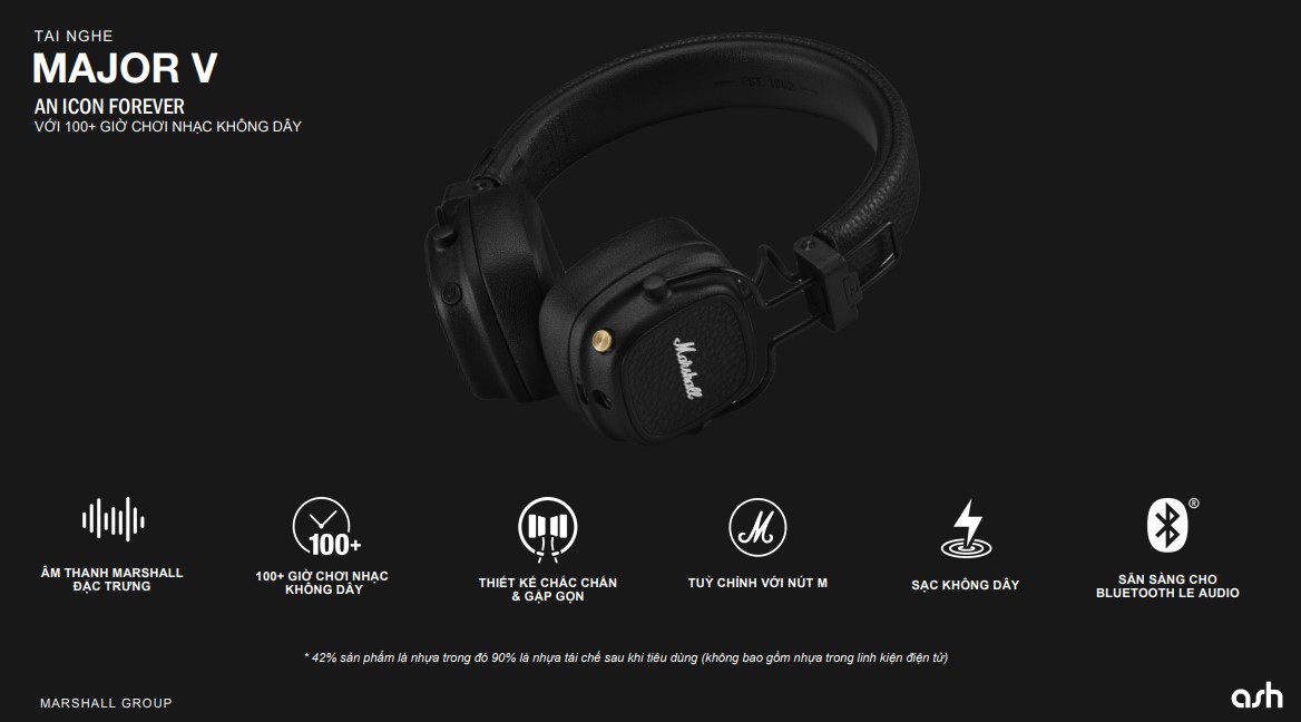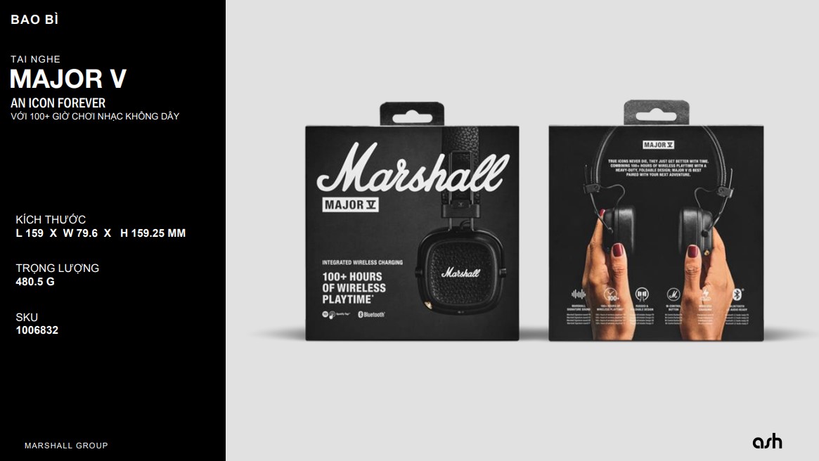 Từ âm thanh bùng nổ đặc trưng của Marshall cho đến thiết kế biểu tượng, mọi chi tiết của chiếc tai nghe này đều được thiết kế và tinh chỉnh một cách tỉ mỉ nhất Với 100+ giờ chơi nhạc không dây kết hợp với thiết kế linh hoạt có thể gập lại một cách chắc chắn, Major V là sự kết hợp bền bỉ cho chuyến phiêu lưu tuyệt vời của bạn.