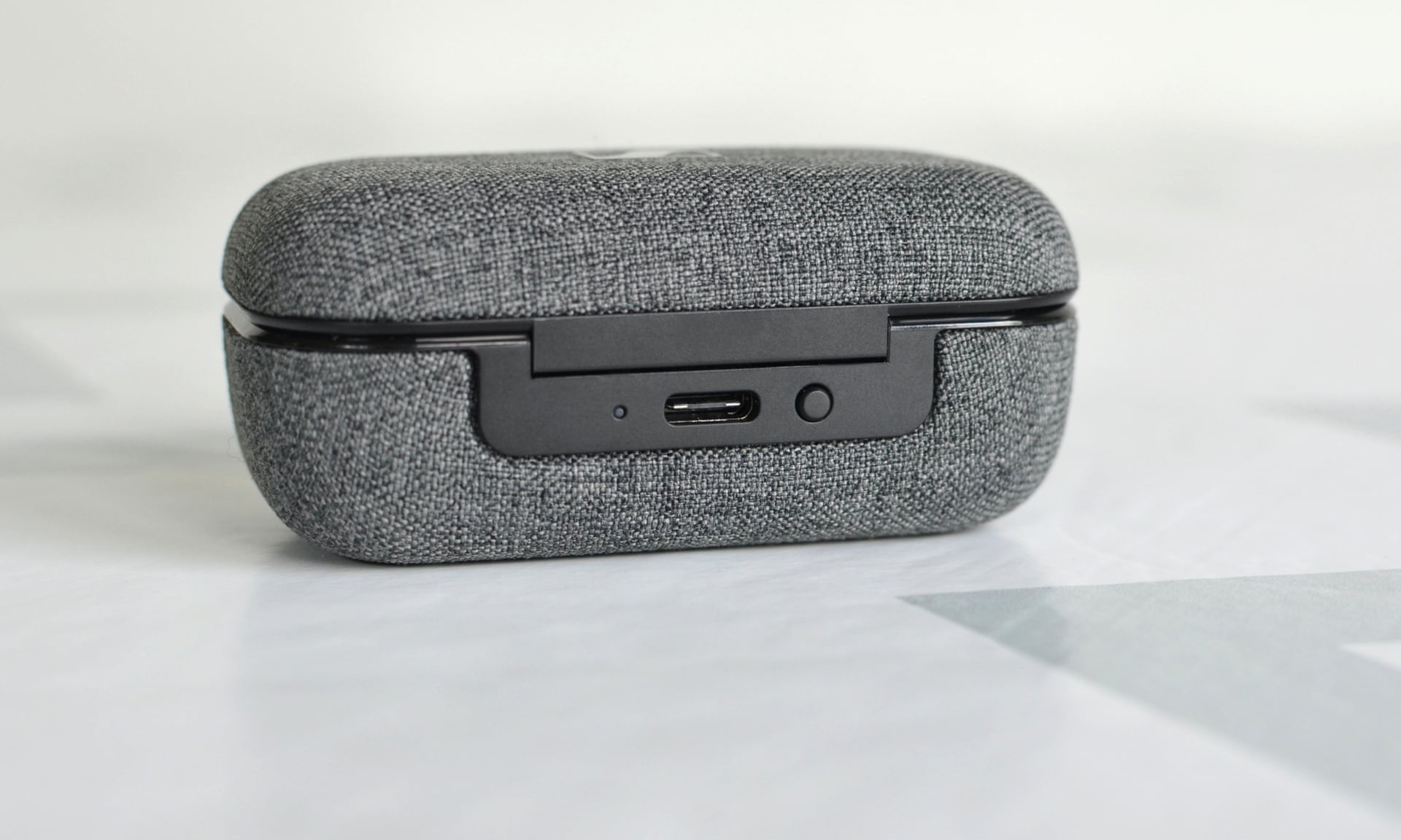 Phía sau là cổng sạc USB-C và nút bật báo pin.