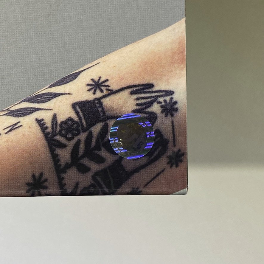 + Tem 7 màu: Các bạn lật qua, lật lại, soi ngoài nắng sẽ thấy chữ ASH được in chìm xuống và các vân sọc 7 màu